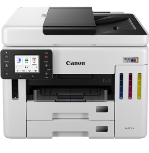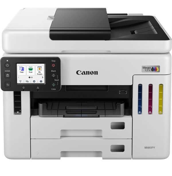 Oszczędzaj na całkowitych kosztach druku dzięki wielofunkcyjnej drukarce atramentowej Canon MAXIFY GX7140 z wymiennymi zbiornikami MegaTank dla małego biura. Dzięki wydajności 14 000 stron z zestawu kolorowych butelek z atramentem lub do 6000 stron z czarnego atramentu, masz gwarancję utrzymania niskich kosztów biznesowych podczas codziennego drukowania dużych nakładów. Niewielkie rozmiary, ale bogate w funkcje – drukarka oferuje dużą pojemność papieru 600 arkuszy, automatyczny podajnik dokumentów (ADF) na 50 arkuszy i prędkość druku do 24 obrazów na minutę. Drukuj, skanuj, kopiuj i łącz się z chmurą, obsługuj różne nośniki i korzystaj z wielopoziomowych zabezpieczeń – wszystko to za pomocą łatwego w obsłudze, odchylanego, kolorowego ekranu dotykowego LCD o przekątnej 6,9 cm. Drukarka dopasuje się do przepływu pracy w Twojej firmie, a połączenie z aplikacją Canon PRINT, Apple AirPrint (iOS) i Mopria® (Android) umożliwia całodobowe drukowanie z dowolnego miejsca. Canon MAXIFY GX7140 jest następcą popularnego modelu GX7040. Urządzenie oferuje te same niezawodne funkcje, wzbogacone o udoskonaloną łączność, wyższą wydajność oraz te same tusze co w modelu GX7040 (GI-46).