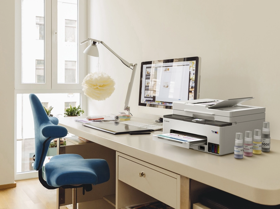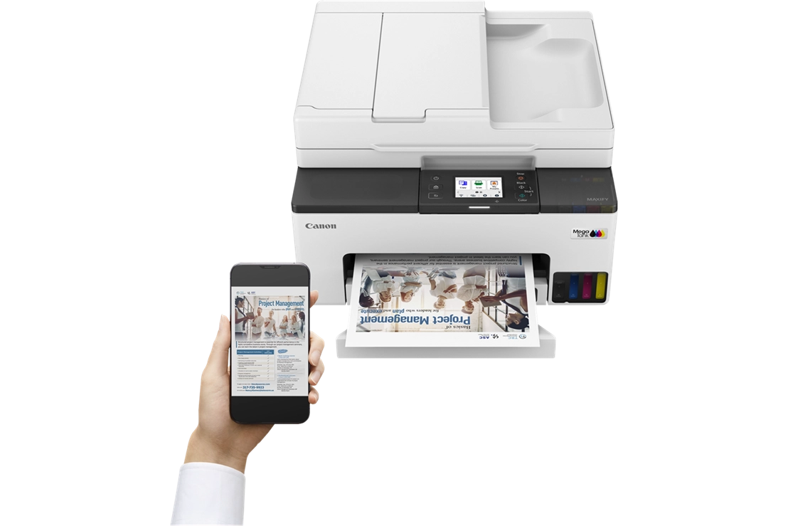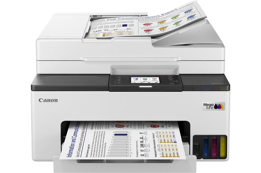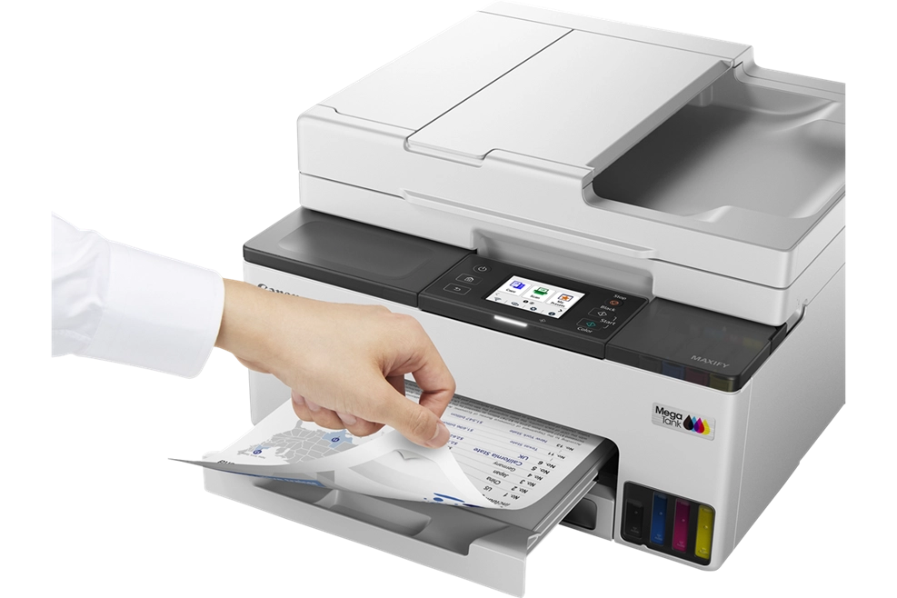 Ta wielofunkcyjna drukarka ze zbiornikiem MegaTank z pełną obsługą z przodu umożliwia drukowanie trwałych dokumentów o jakości biznesowej w domu. MAXIFY GX2041 z łatwością wszędzie się zmieści dzięki zwartej i łatwej w obsłudze konstrukcji. Ciesz się dużą szybkością i wydajnością drukowania dzięki przystępnym cenowo butelkom do uzupełniania atramentu oraz możliwością skanowania, kopiowania i faksowania wielostronicowych dokumentów za sprawą podajnika ADF na 35 arkuszy.