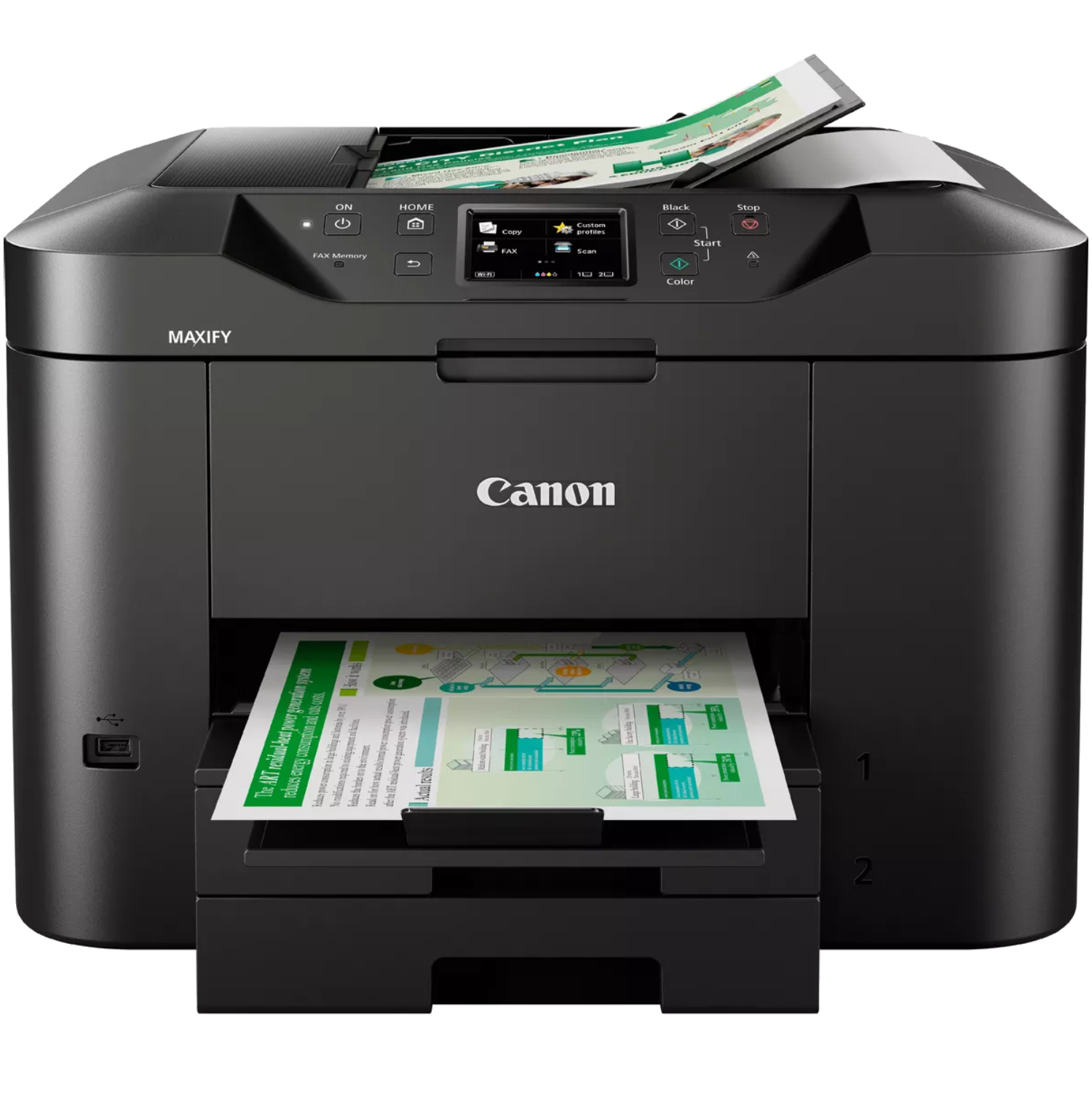 W domowym biurze świetnie sprawdzi się szybkie i niezawodne, atramentowe, kolorowe urządzenie wielofunkcyjne Canon MAXIFY MB2755, zapewniające wysokiej jakości rezultaty. Skorzystaj z wygody i wydajności oferowanej przez w pełni funkcjonalną drukarkę, skaner, kopiarkę i faks zaprojektowane specjalnie dla Twojego domowego biura. Urządzenie umożliwia szybkie i proste drukowanie i skanowanie z urządzeń mobilnych i za pośrednictwem usług w chmurze. Pojemność 500 arkuszy i szybkość druku monochromatycznego na poziomie 24 obrazów na minutę pozwala na zwiększenie wydajności.