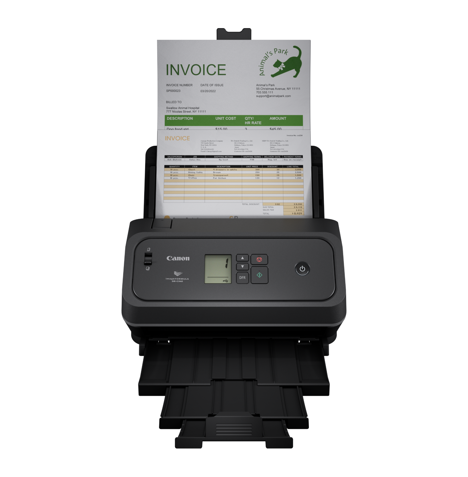 Canon imageFORMULA DR-C340 to wydajny, niezawodny skaner dokumentów, który idealnie sprawdza się w małych i średnich biurach, punktach obsługi klienta oraz innych środowiskach, gdzie liczy się szybkość i jakość digitalizacji dokumentów. Urządzenie wyróżnia się kompaktową konstrukcją, która oszczędza miejsce na biurku, a jednocześnie zapewnia pełen zakres funkcji niezbędnych do codziennej pracy z dokumentami. Skaner wyposażono w automatyczny podajnik ADF o pojemności do 100 arkuszy oraz funkcję dwustronnego skanowania (dupleks), co umożliwia szybkie przetwarzanie dokumentów z prędkością do 40 stron na minutę. Proces digitalizacji jest wydajny i sprawny nawet przy większych zadaniach skanowania. Canon DR-C340 obsługuje szeroki zakres nośników — od standardowych dokumentów A4 po paragony, wizytówki czy dokumenty długie — i oferuje wysoką jakość obrazu z rozdzielczością optyczną 600 dpi. Intuicyjny panel sterowania i dedykowane oprogramowanie ułatwiają obsługę oraz integrację z systemami do zarządzania dokumentami, co czyni ten model praktycznym narzędziem w biurze.